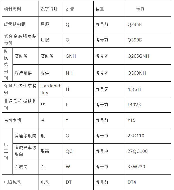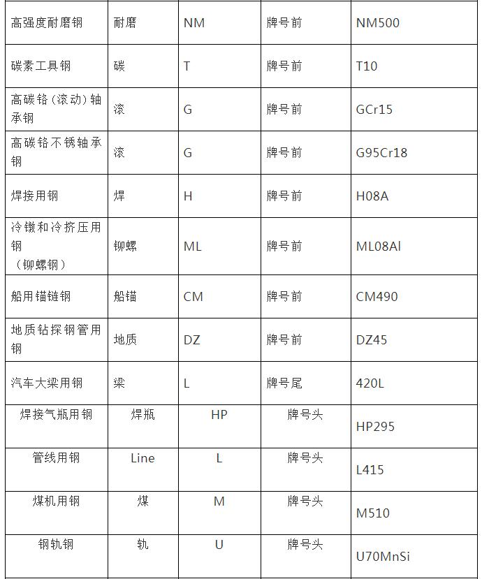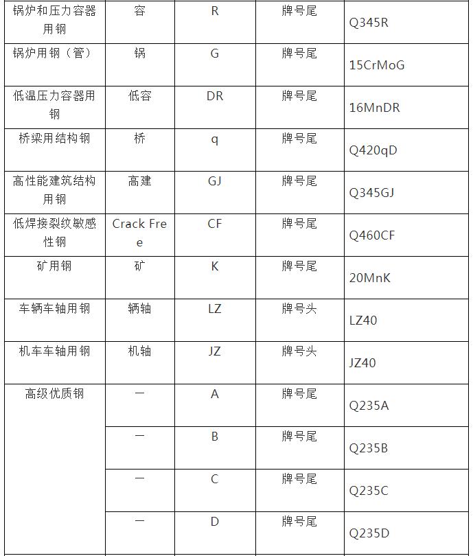 表 國標(biāo)鋼鐵牌號字母含義及其用法